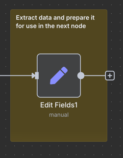 Edit Fields (Set)資料編輯節點。此節點用於修改數據的欄位。當工作流程運行時,這個節點會將前一個節點輸出的數據進行修改。