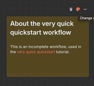 用來做為備註的便利貼,可以在畫布上隨意拖曳、改變大小與顏色。這個元件不會影響工作流程的運行。當滑鼠游標移動到便利貼時,會出現調色盤與垃圾桶的符號,可以用來調整顏色與刪除便利貼。