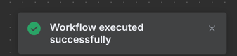 按下模板上Test workflow按鈕,即可執行這個工作流程,執行完成時系統會自動通知成功的訊息,且各個節點會在成功通過時標注一個綠色勾勾。